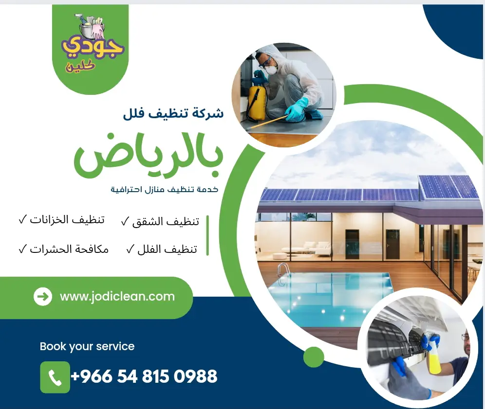 شركة تنظيف فلل بالرياض من جودي كلين تعتبر واحدة من أفضل الشركات في مجال تنظيف الفلل في المملكة نحرص دائمًا على الامتثال للمواعيد وتقديم خدمات عالية الجودة بأقصى سرعة ممكنة الهدف الرئيسي للشركة هو تلبية احتياجات العملاء وتقديم خدمات احترافية استثنائية.